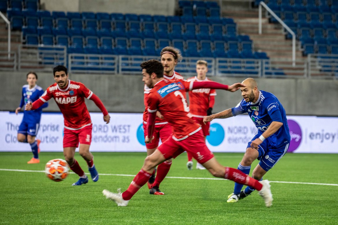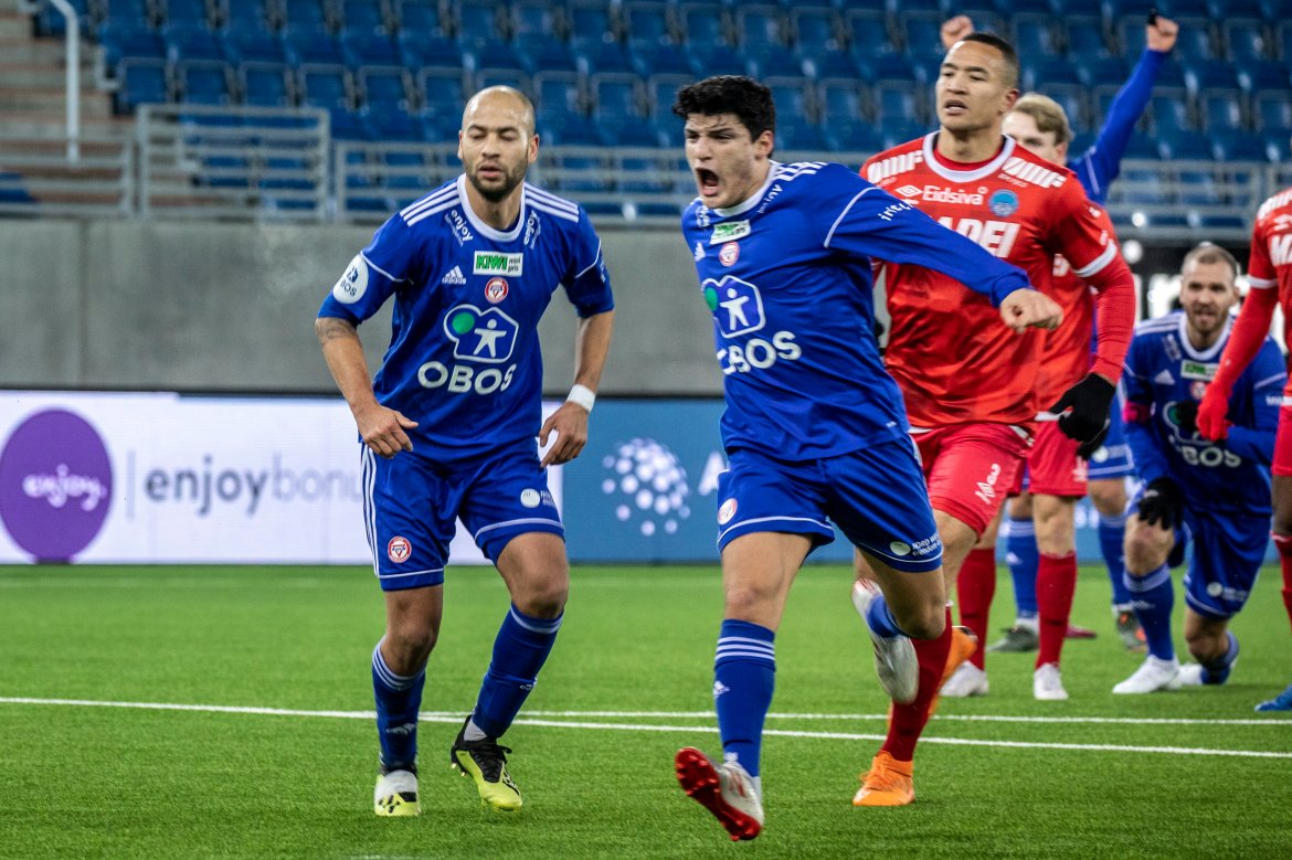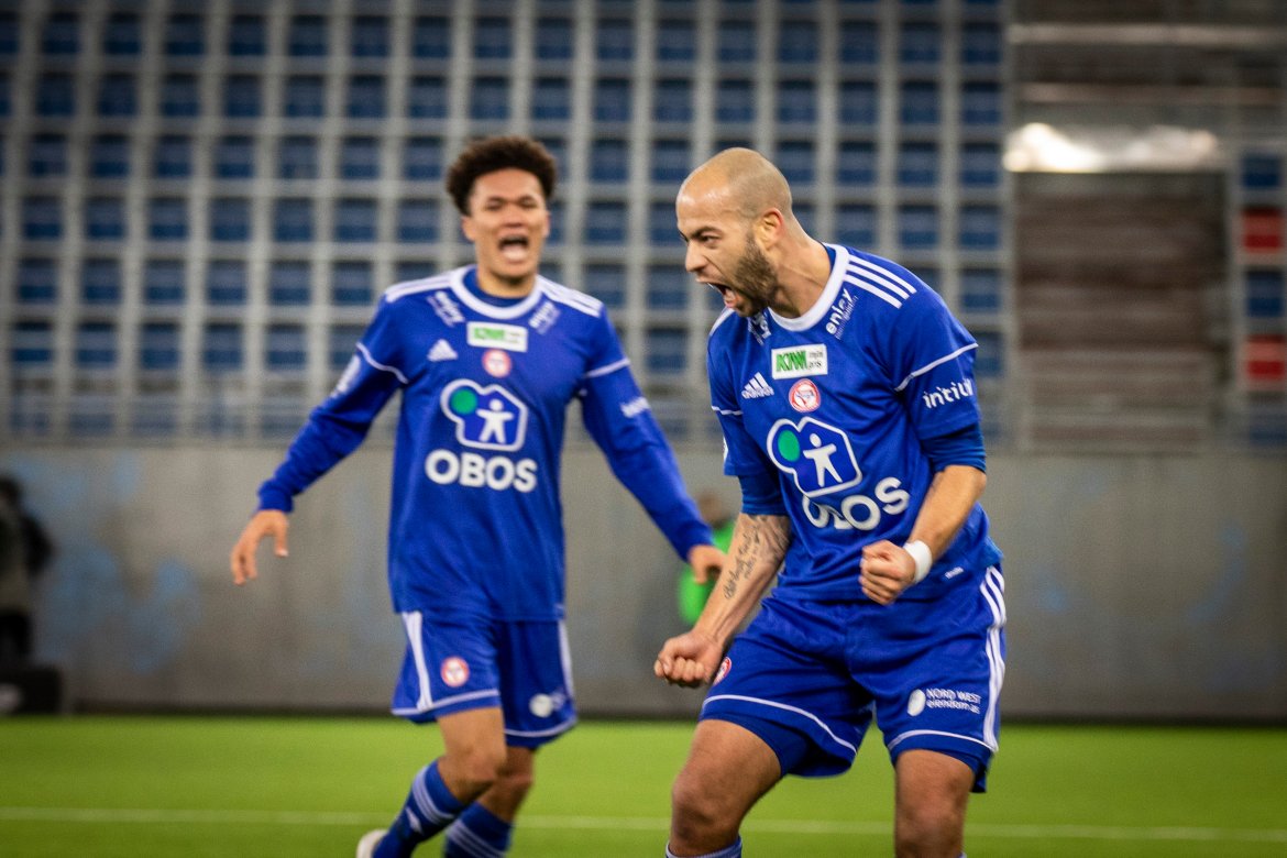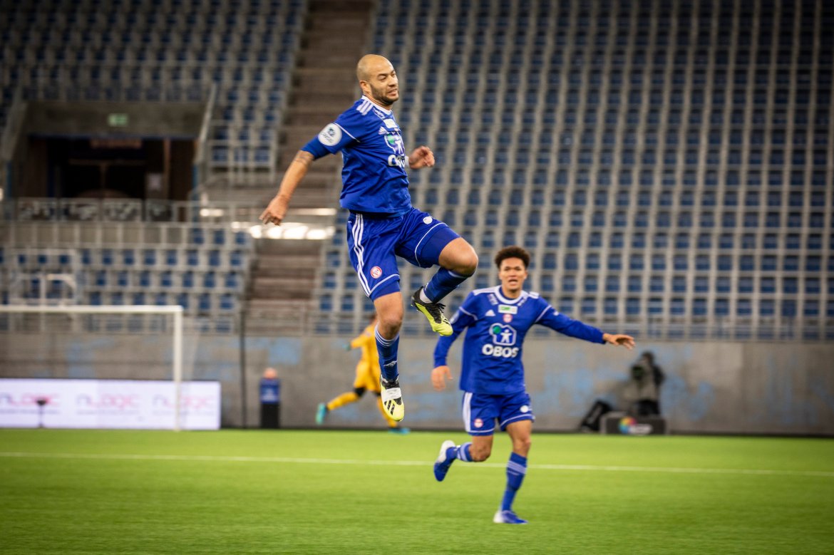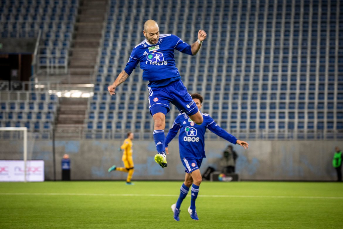 Takk for innsatsen i KFUM-drakt, Kristian! Her et av høydepunktene - scoringen mot Kongsvinger. Foto: Thomas Bjørnflaten