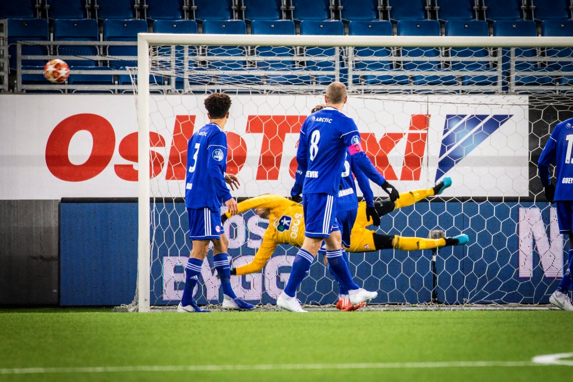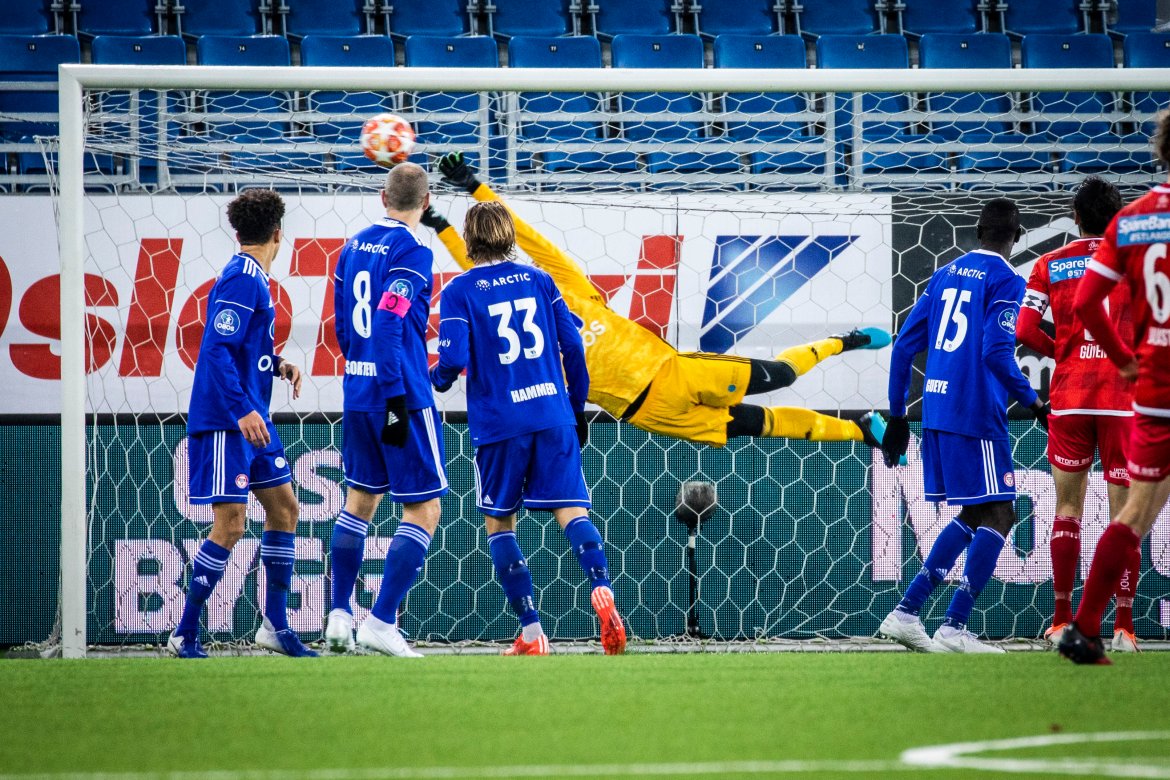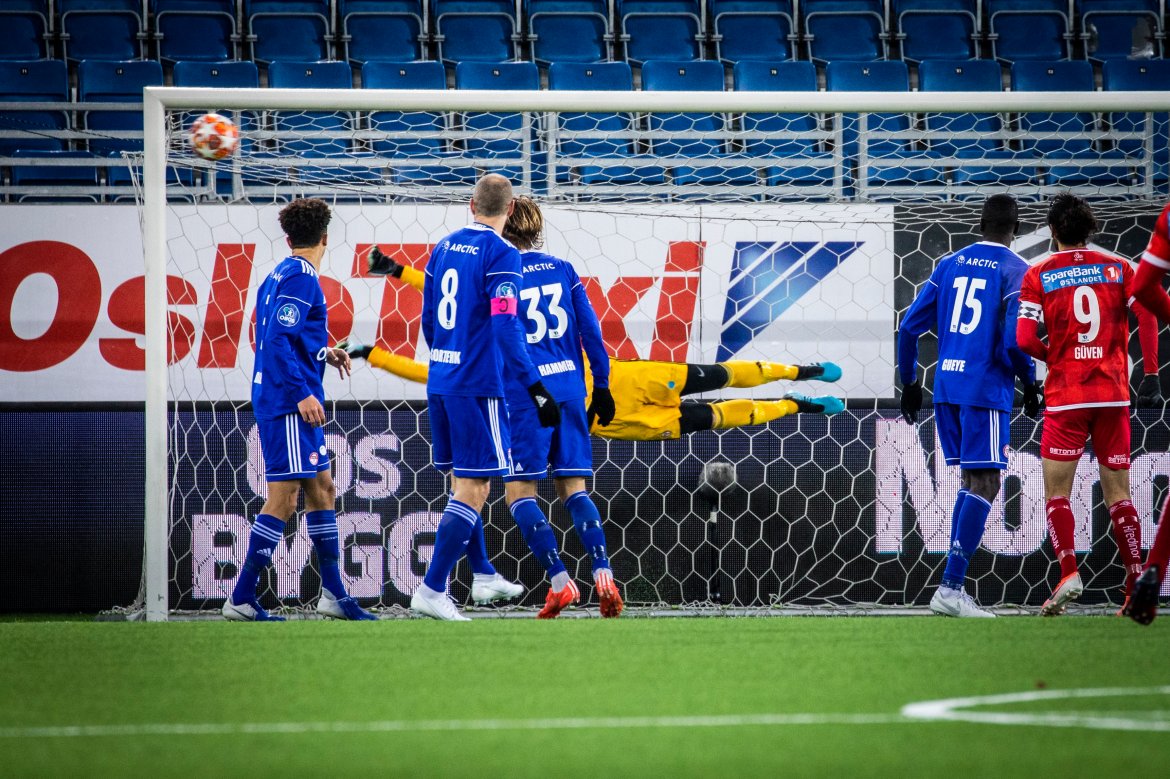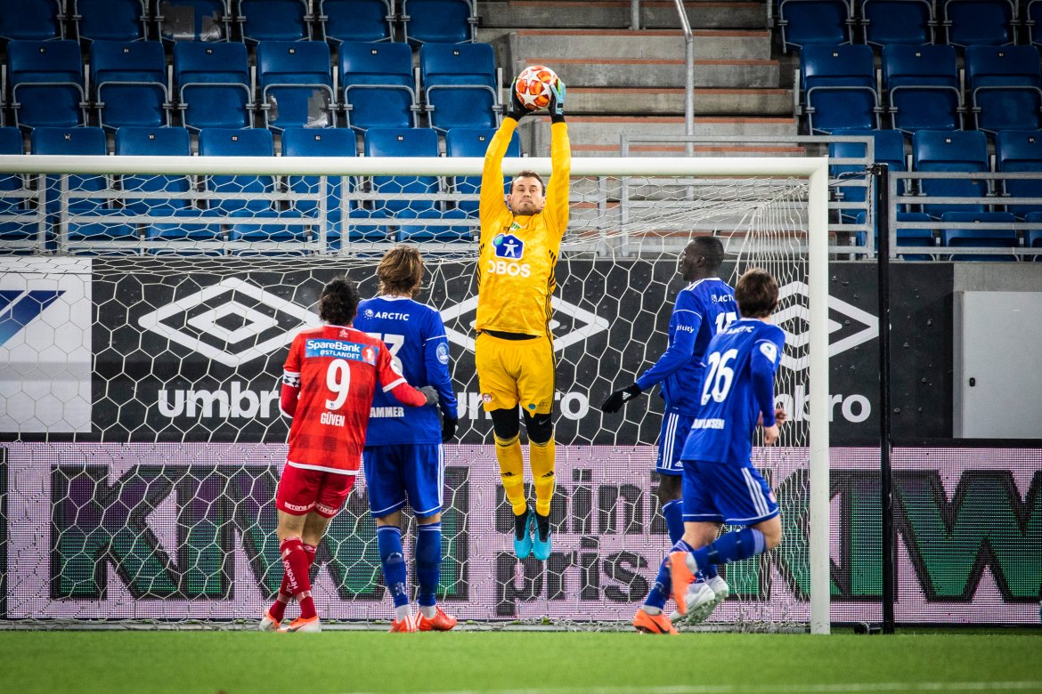 Her kan du finstudere Keeper-Knut i aksjon da han tok seg av headingen fra Güven sist. Foto: Thomas Bjørnflaten/Nyebilder