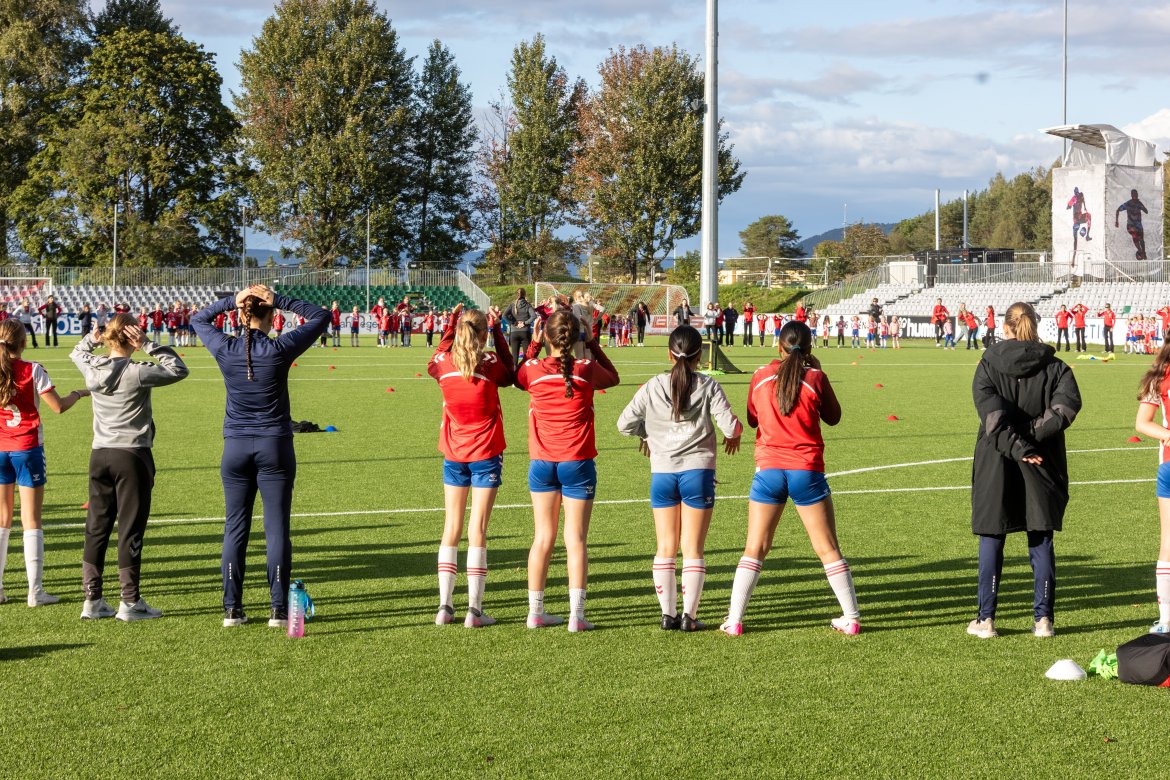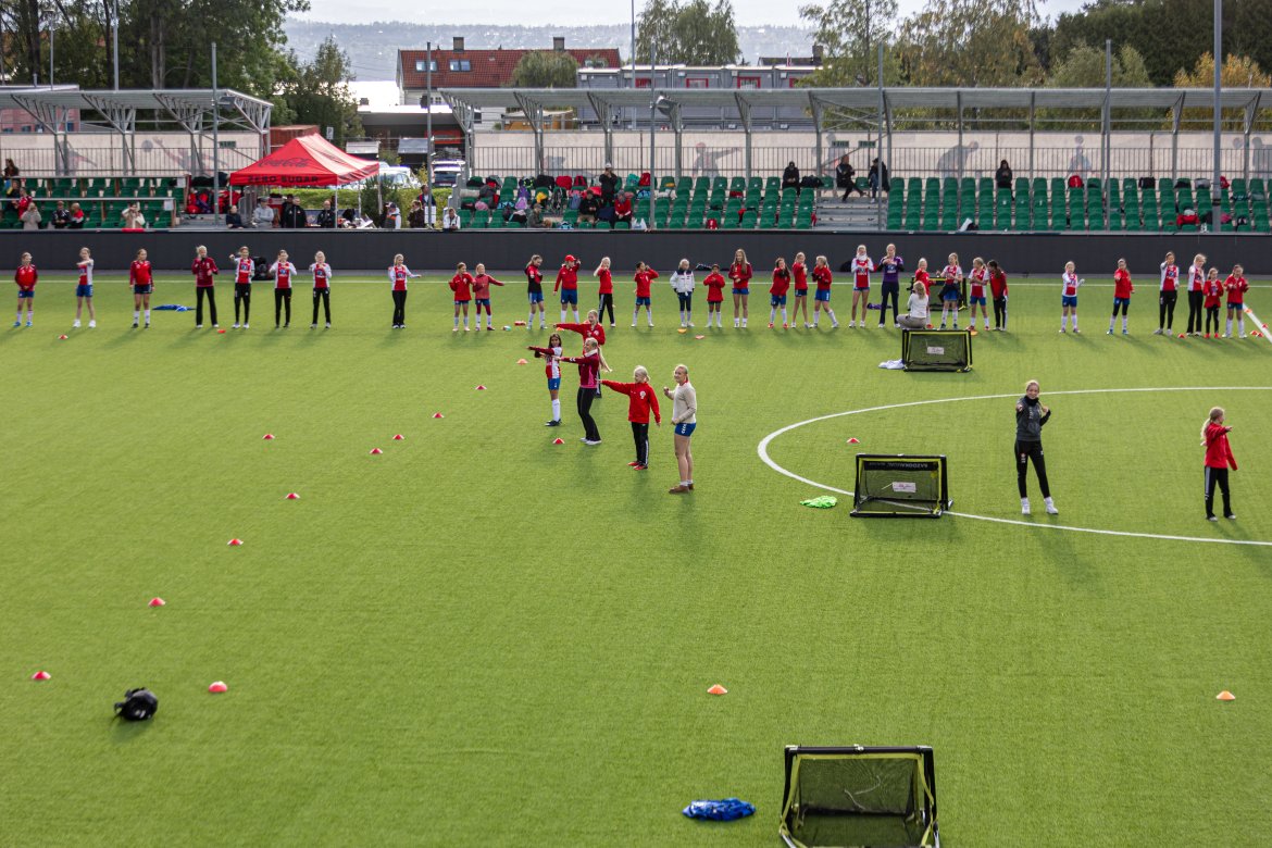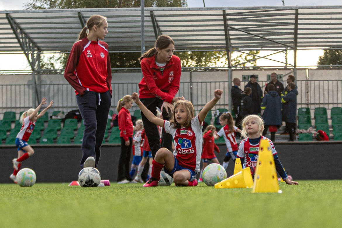 Et høydepunkt var treningsøkten på banen, der klubbens ungdomsspillere tok trenerrollen og ledet de yngre jentene gjennom ulike øvelser. Dette skapte både inspirasjon og gode relasjoner på tvers av kullene – en viktig del av klubbens arbeid for å bygge fellesskap og utvikling i alle ledd.