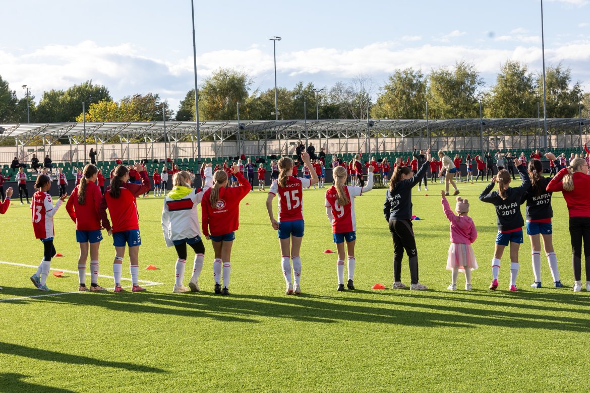 Mandag 22. september fylte 350 jenter på tvers av alderskull KFUM Arena da klubben inviterte til årets store jentedag. Med oppvarming, treningsøkter, fellesskap og damelagskamp på programmet, ble det en kveld som virkelig viste hva KFUM-kameratene handler om - En klubb for livet.